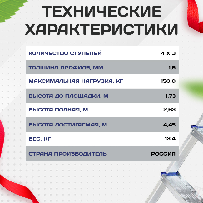 Лестница-трансформер Т433 - идеальное решение для профессионалов. Многофункциональность и компактные размеры позволяют работать в самых стесненных условиях и на непредсказуемом рельефе. Легко адаптируется под необходимые нужды благодаря 4 секциям по 3 ступени.