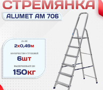 Стремянка Alumet AM 706 предназначена для ремонтно-эксплуатационных, монтажных работ на высоте до 4-х метров на производстве и в быту.