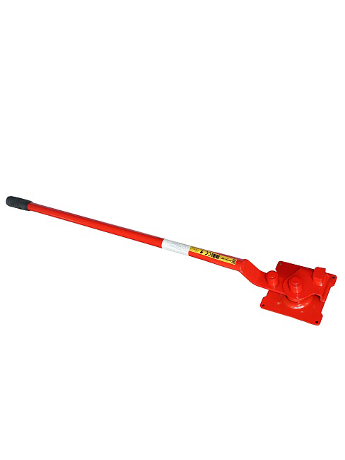 Главное преимущество данной модели - длинный рычаг, снижающий напряжение на руку рабочего при гибке арматуры, а также наличие дополнительного вертикального упора, за счет которого арматура при загибе имеет более плавный угол.