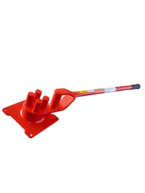 Станок состоит из небольшой квадратной стальной пластины с отверстиями, с помощью которых крепится к стационарному рабочему месту; вертикальных упоров (штифтов), между которыми размещается арматура; рычага длиной 900 мм с нескользящей рельефной резиновой ручкой. Благодаря рычагу осуществляется движение одного упора относительно другого и происходит загиб стержня.