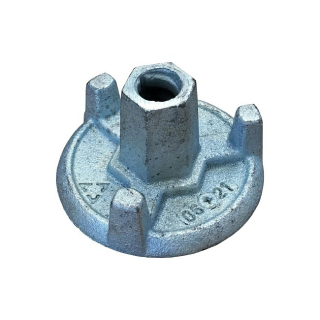 Гайка литая оцинкованная используется вместе со стяжным винтом или шкворнем. Основная функция - фиксация щитов опалубки. Не дает разойтись панелям опалубки под давлением цементной смеси. Изготовлена методом литья.