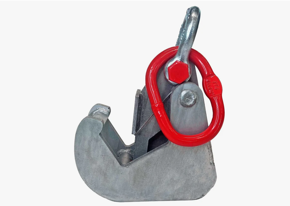 Монтажный захват с узким захватом предназначен для крепления опалубки и собранных панелей опалубки с помощью грузоподъемной техники. Он состоит из корпуса и пружинного фиксатора, который предотвращает смещение щита по горизонтали при его перемещении. Парное применение монтажных захватов обеспечивает надежную фиксацию поднимаемого груза с необходимым запасом прочности. Захват оцинкован, что обеспечивает его долговечность и защиту от коррозии. Активно используется в монолитном строительстве и обладает грузоподъемностью 1500 кг. Каждое изделие имеет технический паспорт, в соответствии с которым должен проводиться процесс эксплуатации.