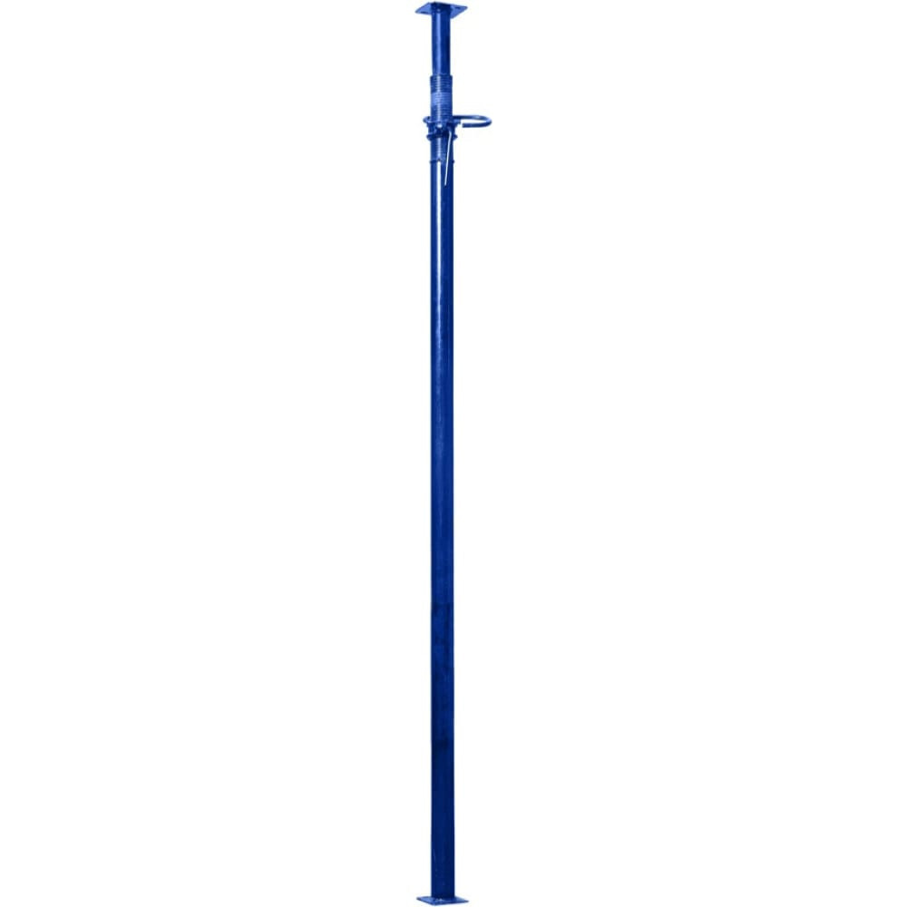 Телескопическая стойка для опалубки 4,2 м (домкрат) предназначена для поддержания горизонтальных щитов опалубки при возведении монолитных потолочных перекрытий, а также в качестве временной опоры при строительстве и ремонте. Изготовлена из двух стальных труб 60 и 48 мм с толщиной стенки металла 2,5 и 2 мм соответственно. Нижняя (более широкая) имеет опорную площадку для устойчивости. На нее накручивается опорная гайка и вставляется телескопическая труба меньшего диаметра с прорезями по всей длине. Фиксация нужной длины стойки выполняется крепёжной серьгой через прорези в насадке и отверстия в верхней трубе с опорой на гайку. Минимальная высота данной модели стойки – 2,53 метра, максимальная – 4,2 метра. Чем выше вы выдвигаете стойку, тем меньше на нее должна быть нагрузка. Точные значения для каждого положения высоты указаны в паспорте изделия. Для того, чтобы собрать опалубочную конструкцию перекрытия, кроме телескопической стойки-домкрата вам понадобятся: - ламинированная фанера (не менее 15 мм толщиной) - двутавровая деревянная балка - тренога (для обеспечения устойчивости стойки) - унивилка (для размещения двутавровой балки и фанеры) Порядок монтажа телескопических стоек на строительной площадке 1. На площадке, подготовленной в соответствии с ППР объекта, устанавливается тренога. При этом поворотные ноги располагаются так, чтобы обеспечить ее максимальную устойчивость с учетом конфигурации опорной поверхности. 2. Поднимают фиксатор треноги до упора, устанавливают телескопическую стойку и опускают фиксатор, который, скользя по наклонной трубе, зажимает стойку. 3. После установки телескопических стоек в треноги, все стойки под опалубку выравниваются по высоте и производится монтаж щитов опалубки перекрытий в следующем порядке: - продольная (нижняя) балка укладывается в унивилку; - поперечная балка или брус (верхняя) укладывается на продольную; - с помощью гайки стойки по уровню производится точная юстировка опалубочного стола; - после точной юстировки производится монтаж фанеры.