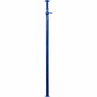 Телескопическая стойка для опалубки 4,5 м (домкрат) предназначена для поддержания горизонтальных щитов опалубки при возведении монолитных потолочных перекрытий, а также в качестве временной опоры при строительстве и ремонте. Изготовлена из двух стальных труб 60 и 48 мм с толщиной стенки металла 2,5 и 2 мм соответственно. Нижняя (более широкая) имеет опорную площадку для устойчивости. На нее накручивается опорная гайка и вставляется телескопическая труба меньшего диаметра с прорезями по всей длине. Фиксация нужной длины стойки выполняется крепёжной серьгой через прорези в насадке и отверстия в верхней трубе с опорой на гайку. Минимальная высота данной модели стойки – 2,96 метра, максимальная – 4,5 метра. Чем выше вы выдвигаете стойку, тем меньше на нее должна быть нагрузка. Точные значения для каждого положения высоты указаны в паспорте изделия. Для того, чтобы собрать опалубочную конструкцию перекрытия, кроме телескопической стойки-домкрата вам понадобятся: - ламинированная фанера (не менее 15 мм толщиной) - двутавровая деревянная балка - тренога (для обеспечения устойчивости стойки) - унивилка (для размещения двутавровой балки и фанеры) Порядок монтажа телескопических стоек на строительной площадке 1. На площадке, подготовленной в соответствии с ППР объекта, устанавливается тренога. При этом поворотные ноги располагаются так, чтобы обеспечить ее максимальную устойчивость с учетом конфигурации опорной поверхности. 2. Поднимают фиксатор треноги до упора, устанавливают телескопическую стойку и опускают фиксатор, который, скользя по наклонной трубе, зажимает стойку. 3. После установки телескопических стоек в треноги, все стойки под опалубку выравниваются по высоте и производится монтаж щитов опалубки перекрытий в следующем порядке: - продольная (нижняя) балка укладывается в унивилку; - поперечная балка или брус (верхняя) укладывается на продольную; - с помощью гайки стойки по уровню производится точная юстировка опалубочного стола; - после точной юстировки производится монтаж фанеры.