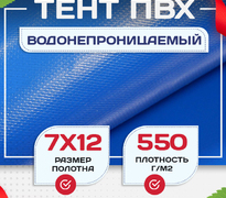Тент ПВХ 550 грамм/м размером 7х10 метров и с люверсами каждые 0,5 метра синего цвета за счет своей плотности отличается повышенной износостойкостью и грязеустойчивостью. Может использоваться в критически высоких или низких температурах окружающей среды, при сильных ветровых нагрузках, длительных неблагоприятных погодных условиях.
