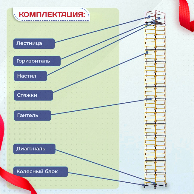 Вышка ВСП-250 шириной 1.2х2.0 метра - универсальная передвижная модель для строительных, ремонтных, монтажных работ как внутри помещения, так и для уличных работ.