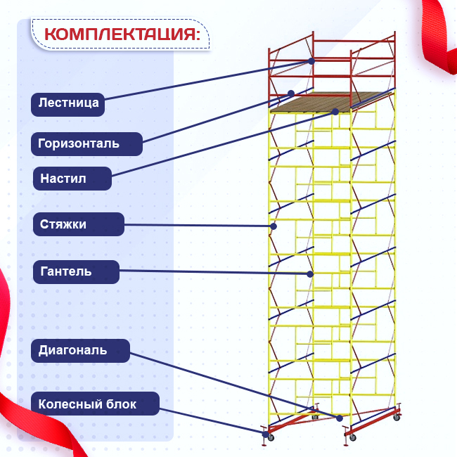 Вышка ВСП-250 шириной 2.0х2.0 метра - универсальная передвижная модель для строительных, ремонтных, монтажных работ как внутри помещения, так и для уличных работ с увеличенной рабочей площадкой. За счет ширины базового блока на ней комфортно работать сразу нескольким людям, разместив весь необходимый инструмент и материалы. Легко собирается без необходимости использования специального инструмента (все элементы соединяются флажковыми механизмами). Ее просто перемещать по объекту за счет наличия больших прорезиненных колес, которые снабжены фиксаторами положения. Позволяют тонко подрегулировать высоту вышки и зафиксировать ее от нежелательных перемещений во время работ. Данную модель вышки можно доращивать по высоте дополнительными секциями до 20 метров (не входят в стоимость). Секции вышки снабжены диагональными металлическими стяжками. Они обеспечивают дополнительную устойчивость при резких порывах ветра. Настил изготовлен из фанеры толщиной 10 мм, состоит из четырех независимых частей, в одной из которых есть люк для безопасного и удобного перемещения для проведения работ. Также настилы можно размещать на разных уровнях вышки для одновременных работ, соблюдая технику безопасности. Помните, вышка выдерживает общий вес до 250 кг.